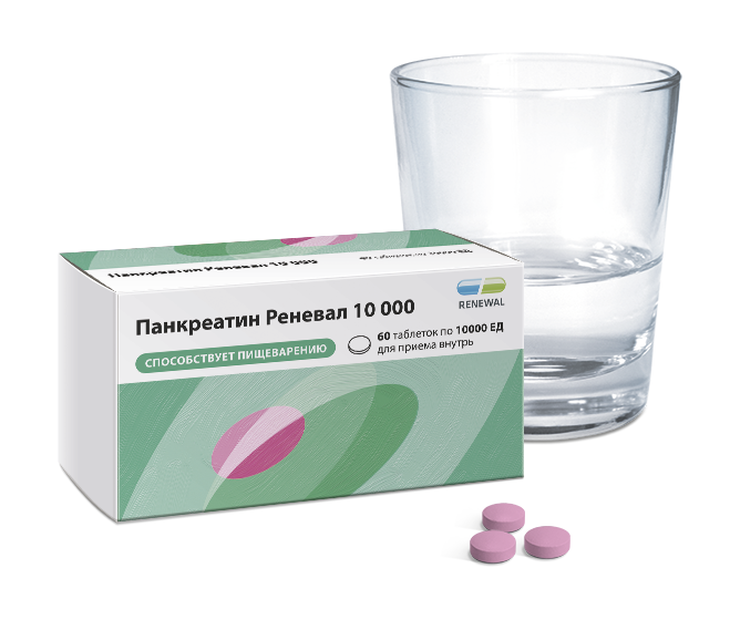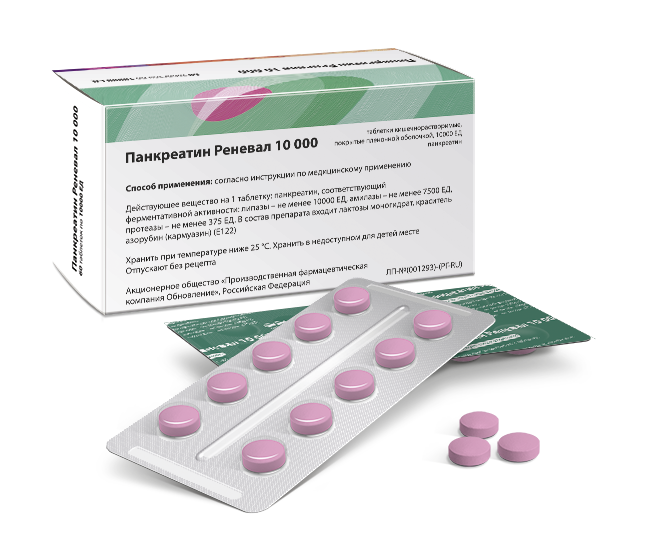 Панкреатин Реневал 10000 таблетки кишечнорастворимые покрытые пленочной оболочкой 10000ЕД №60