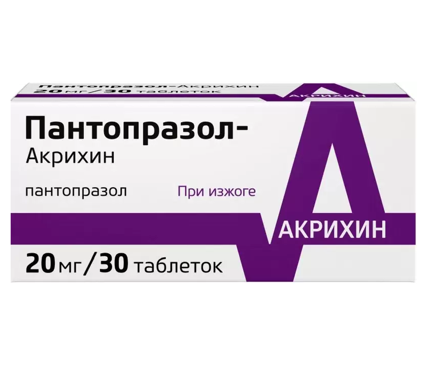 Пантопразол-Акрихин таблетки кишечнорастворимые покрытые плёночной оболочкой 20мг №30
