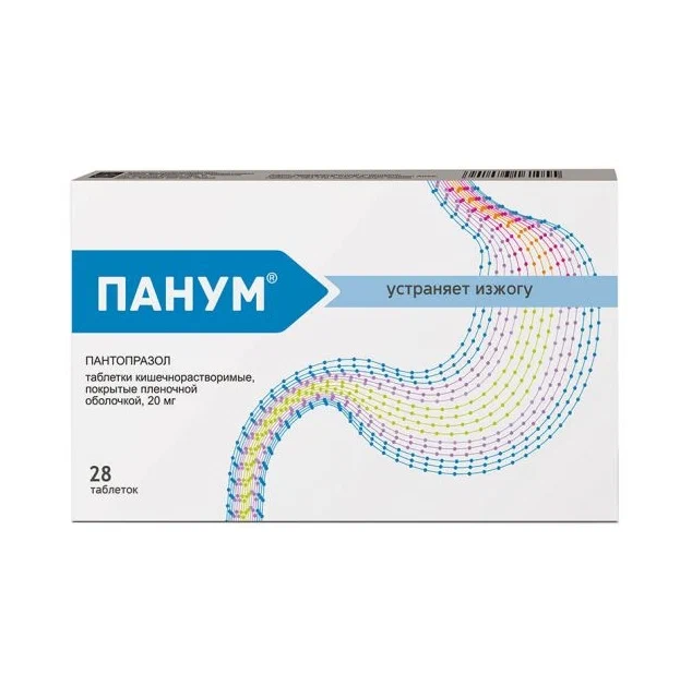 Панум таблетки кишечнорастворимые покрытые плёночной оболочкой 20мг №28