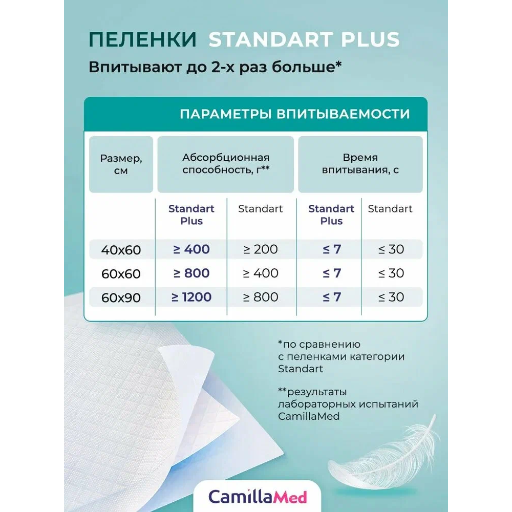 CamillaMed Standart Plus одноразовые впитывающие пеленки 60х60см №10
