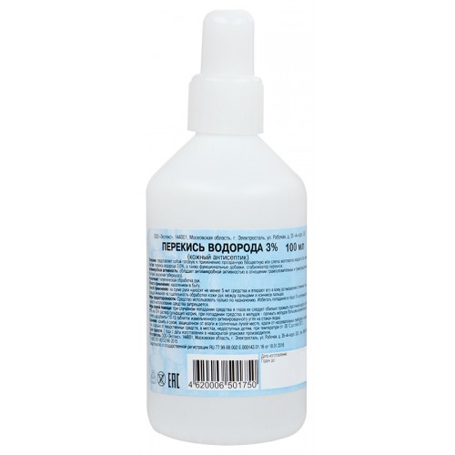 Перекись водорода раствор 3% (кожный антисептик) средство дезинфицирующее флакон 100мл (отпуск 50шт)