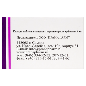 | Периндоприл эрбумин | 2,0 | 4,0 | 8,0 |