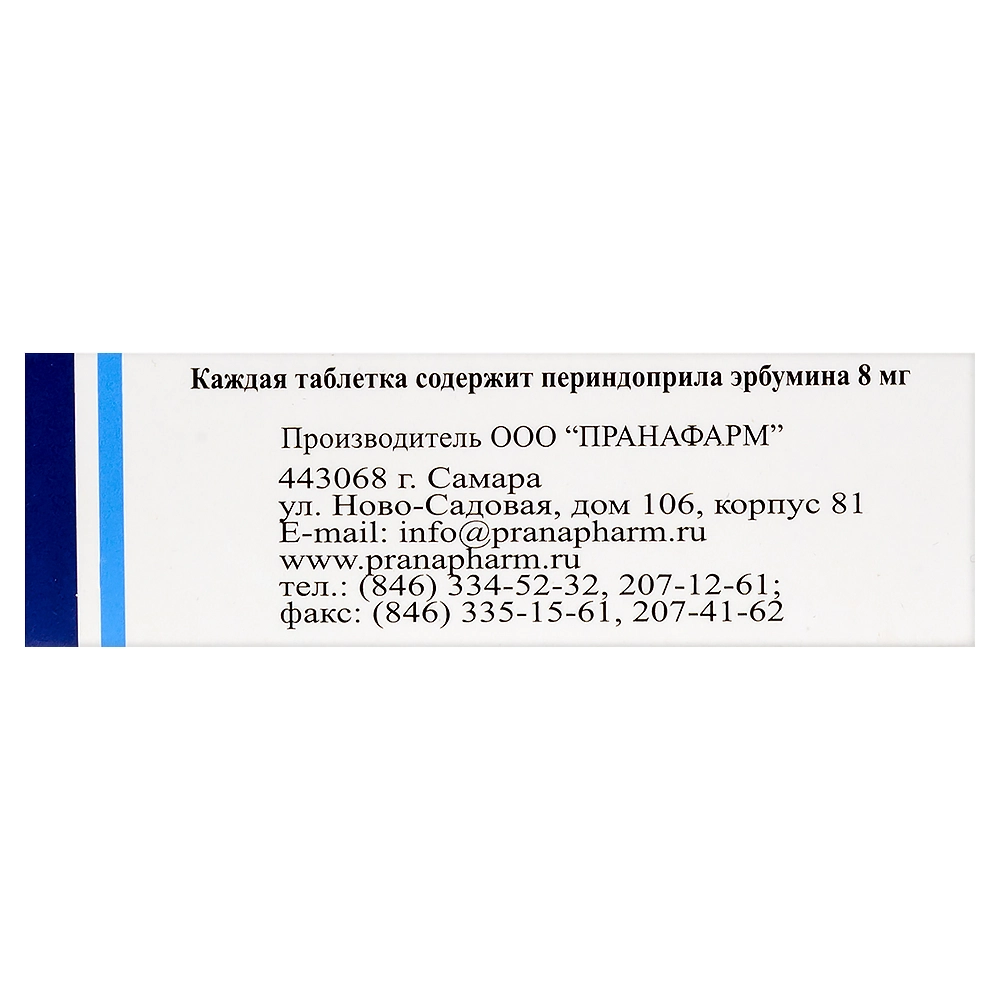 | Периндоприл эрбумин | 2,0 | 4,0 | 8,0 |