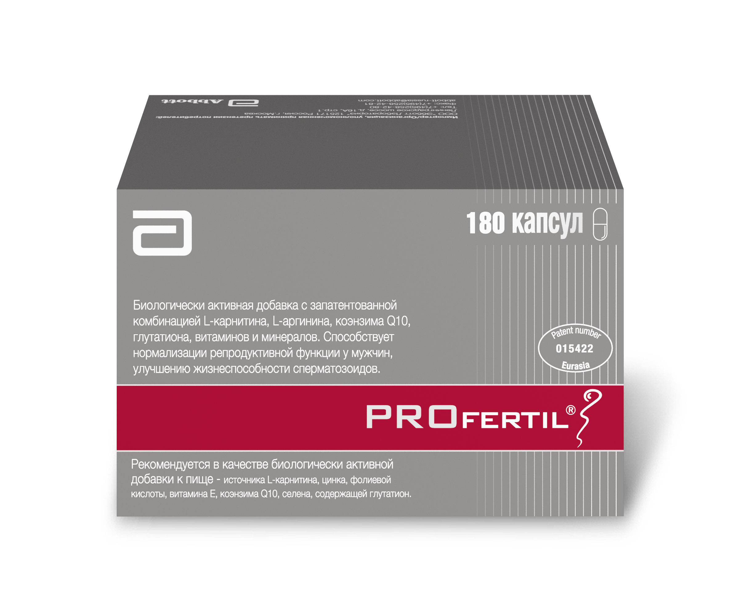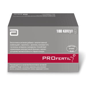 - Профертил - биологически активная добавка с запатентованной комбинацией L-карнитина, L-аргинина, коэнзима Q10, глутатиона, витаминов и минералов. Способствует нормализации репродуктивной функции у мужчин, улучшению жизнеспособности сперматозоидов.
