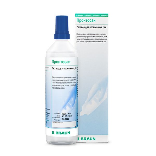 Пронтосан позволяет проводить тщательное очищение раневой поверхности, увлажнять рану и подавлять бактериальную флору, что создает условия для скорейшего раневого заживления. Благодаря антибактериальному компоненту Пронтосан может с успехом использоваться для предупреждения инфицирования ран патогенными микроорганизмами и профилактики развития инфекционных осложнений в ране.