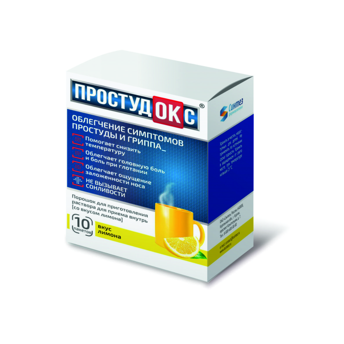 Простудокс® обеспечивает эффективное облегчение симптомов «простуды» и гриппа, таких как повышенная температура, головная боль, озноб, ощущение заложенности носа, боль при глотании.