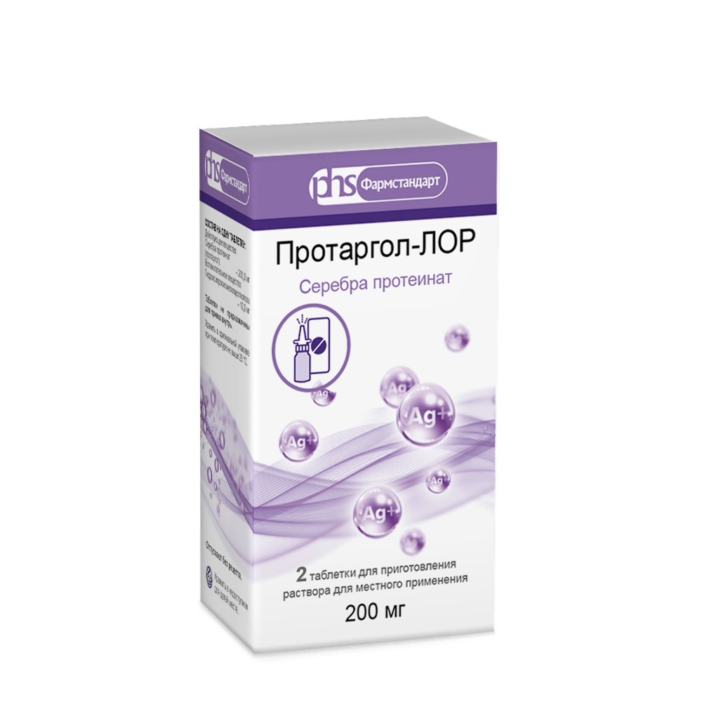 Действующее вещество: ;серебра протеинат (протаргол) — 200,0 ;мг.