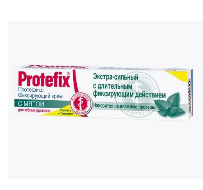 Фиксирующий крем Protefix (Протефикс) с мятой рекомендуется для надежной фиксации зубных протезов при повышенном и нормальном слюноотделении. Он легко наносится, сохраняет свои свойства под воздействием горячей и холодной пищи, не меняет вкус еды и напитков, не оказывает негативного воздействия на желудок. Не смывается слюной и равномерно распределяется по всей прилагающей к десне поверхности. Наносится на влажные протезы.