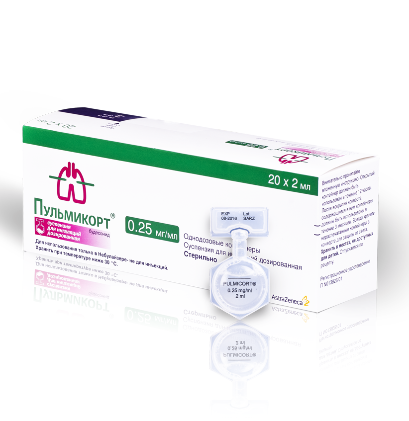 Пульмикорт суспензия для ингаляций дозированная 0,25мг/мл контейнер 2мл №20