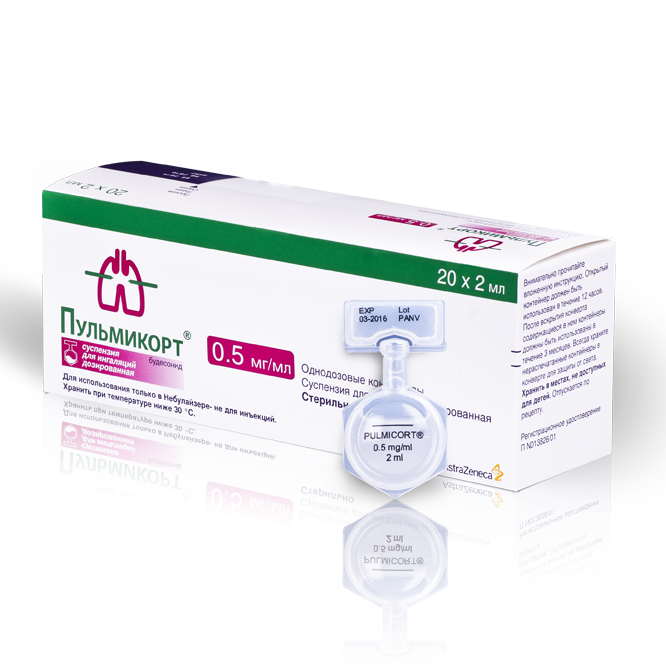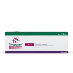 Пульмикорт суспензия для ингаляций дозированная 0,5мг/мл контейнер 2мл №20