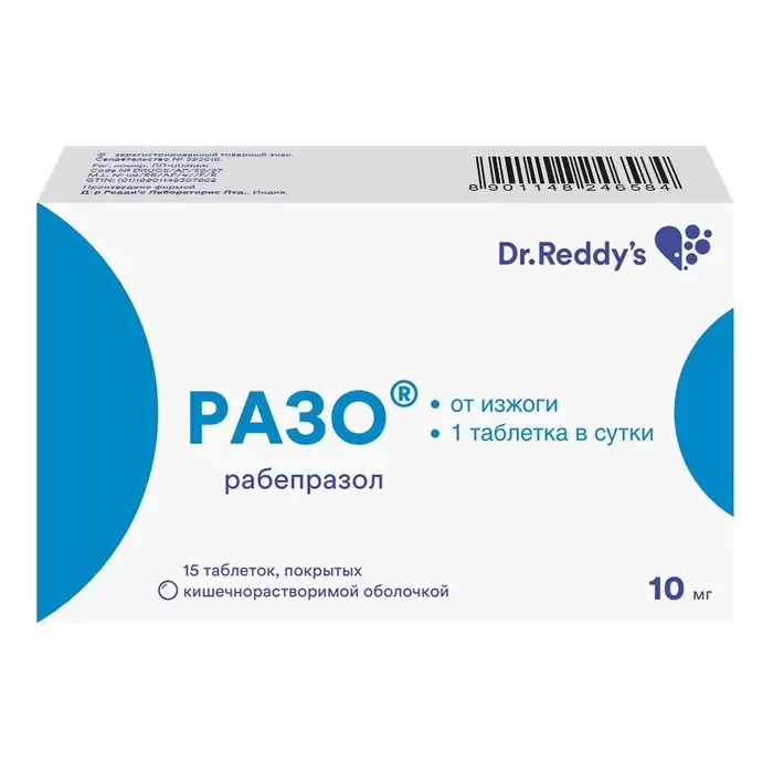 Разо таблетки покрытые кишечнорастворимой оболочкой 10мг №15
