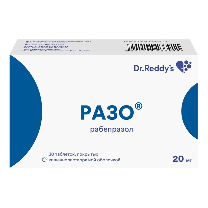 Разо таблетки покрытые кишечнорастворимой оболочкой 20мг №30