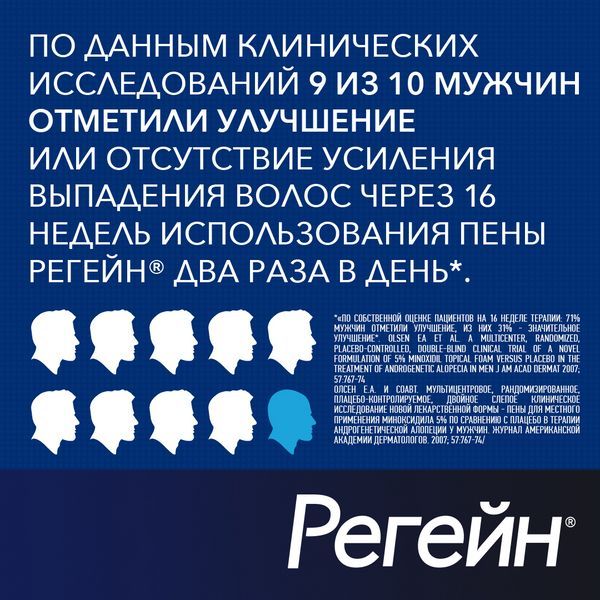 Если после применения лекарственного препарата Регейн® у мужчин в течение 16 недель и у женщин в течение 24 недель усиление роста волос не отмечается, то применение препарата следует прекратить.