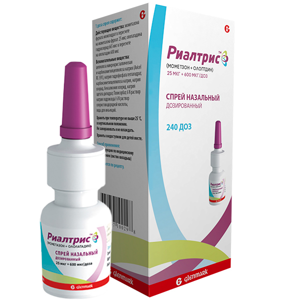 Острая передозировка при использовании данной лекарственной формы маловероятна, поскольку 1 флакон препарата Риалтрис, рассчитан на 30 дней применения (240 доз), содержит около 6 мг мометазона фуроата и 160 мг олопатадина гидрохлорида.
