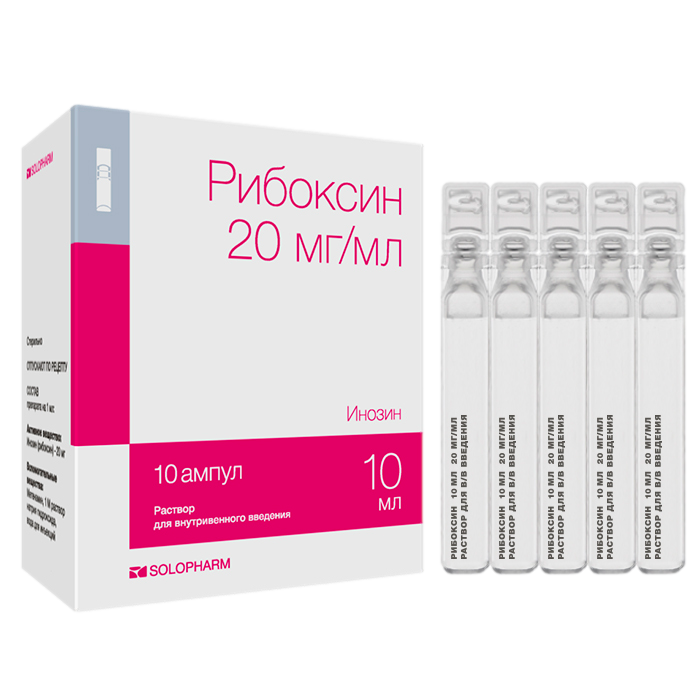 Рибоксин раствор для внутривенного введения 20мг/мл ампулы 10мл №10