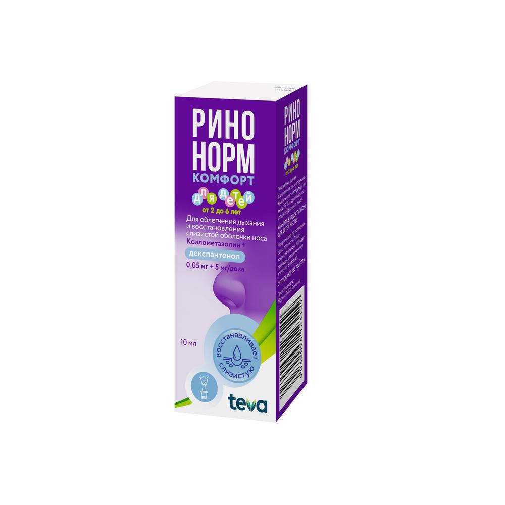 Ринонорм комфорт для детей спрей назальный дозированный 0,05мг+5мг/доза флакон 10мл
