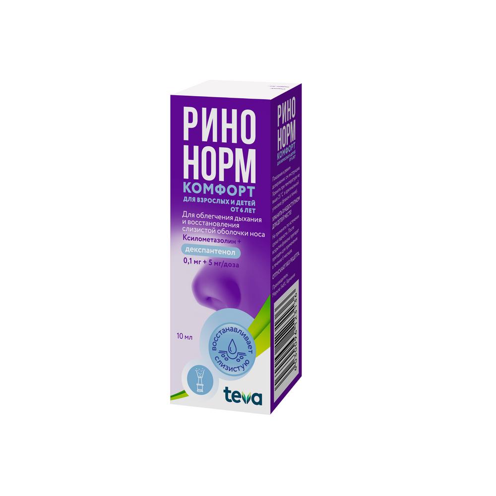 Ринонорм комфорт спрей назальный дозированный 0,1мг +5мг/доза флакон 10мл