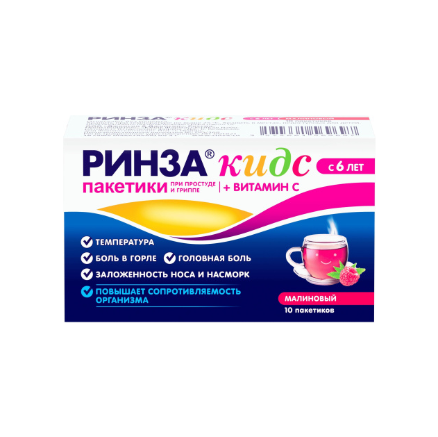 Купить Ринза кидс порошок для приготовления раствора для приёма внутрь малиновый саше 3г №10 по низкой цене