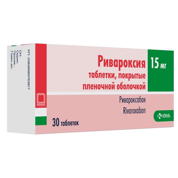 Ривароксия, 15 мг, таблетки, покрытые плёночной оболочкой