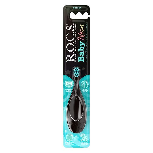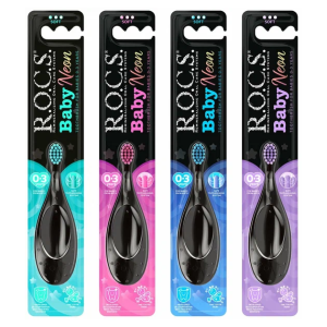 Детская зубная щетка R.O.C.S. "Baby NEON" предназначена для малышей в возрасте от 0 до 3 лет. Данная зубная щетка разработана научной лабораторией при участии детских стоматологов. Изделие учитывает возрастные особенности данного периода и имеет экстрамягкие щетинки, которые не повреждают нежную эмаль и мягкие ткани ротовой полости ребенка.