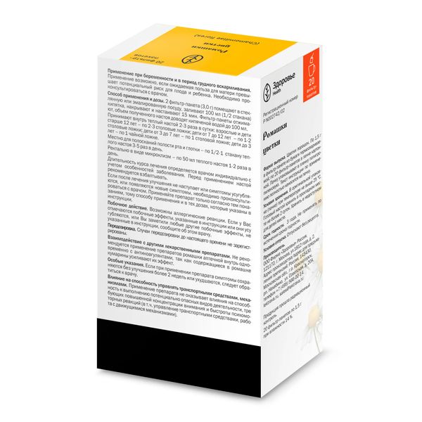 Ромашки аптечной цветки измельчённые фильтр-пакеты 1,5г №20