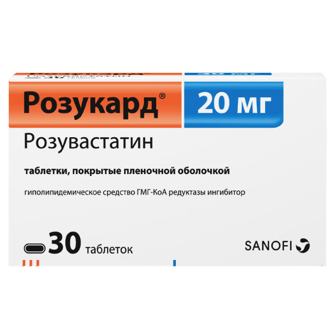 Розукард таблетки покрытые плёночной оболочкой 20мг №30
