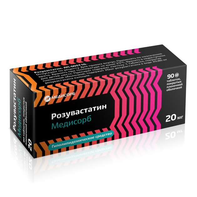 Розувастатин Медисорб таблетки покрытые плёночной оболочкой 10мг №90
