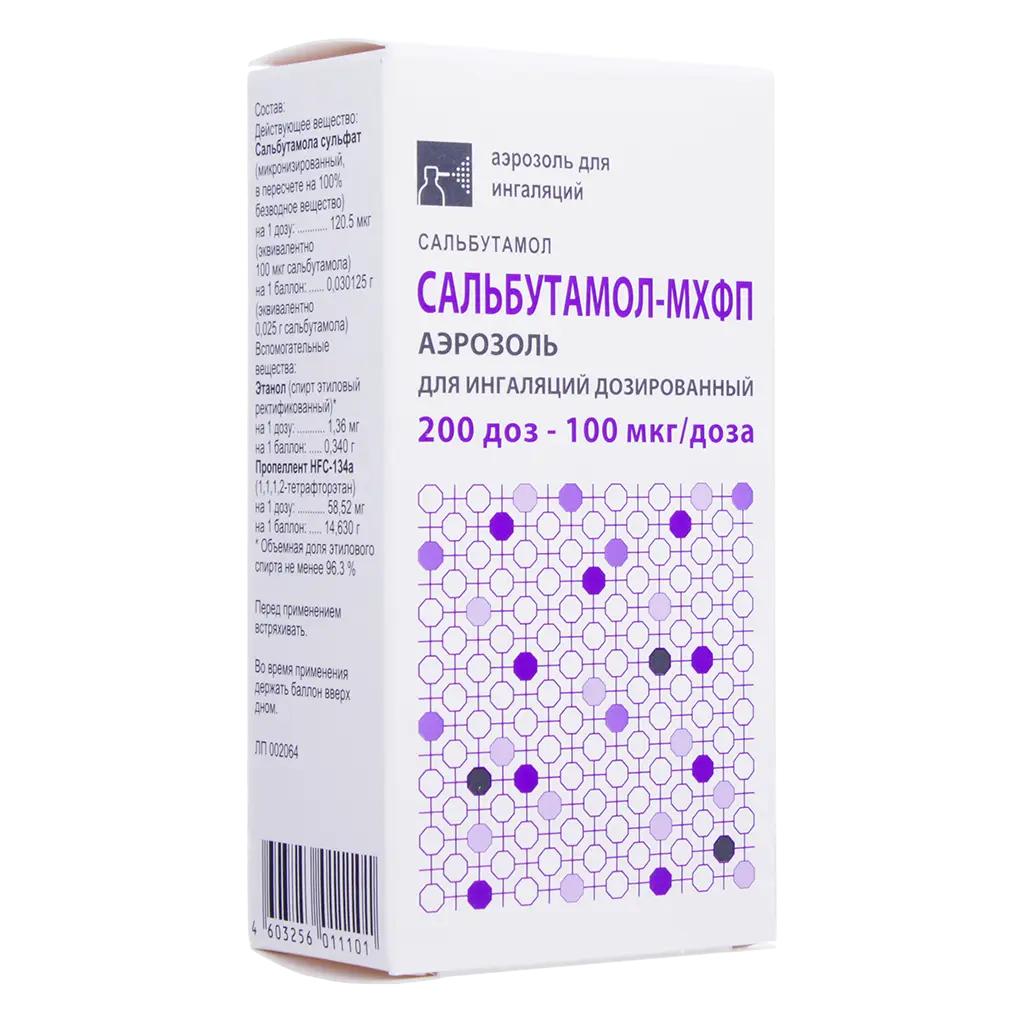 Сальбутамол-МХФП аэрозоль для ингаляций дозированный 100 ;мкг/доза предназначен только для ингаляционного введения.