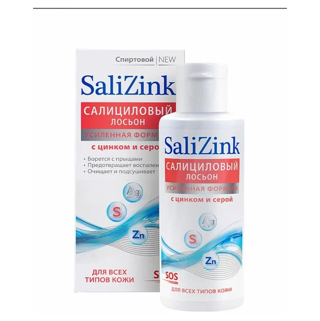 СалиЦинк салициловый лосьон спиртовой с цинком и серой для всех типов кожи флакон 100мл