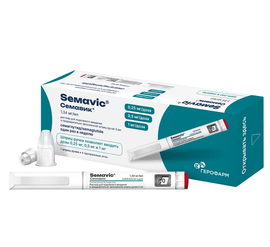 Семавик раствор для подкожного введения 0,25/0,5/1мг/доза картридж 3мл в шприц-ручке №1 в комплекте с иглами №4