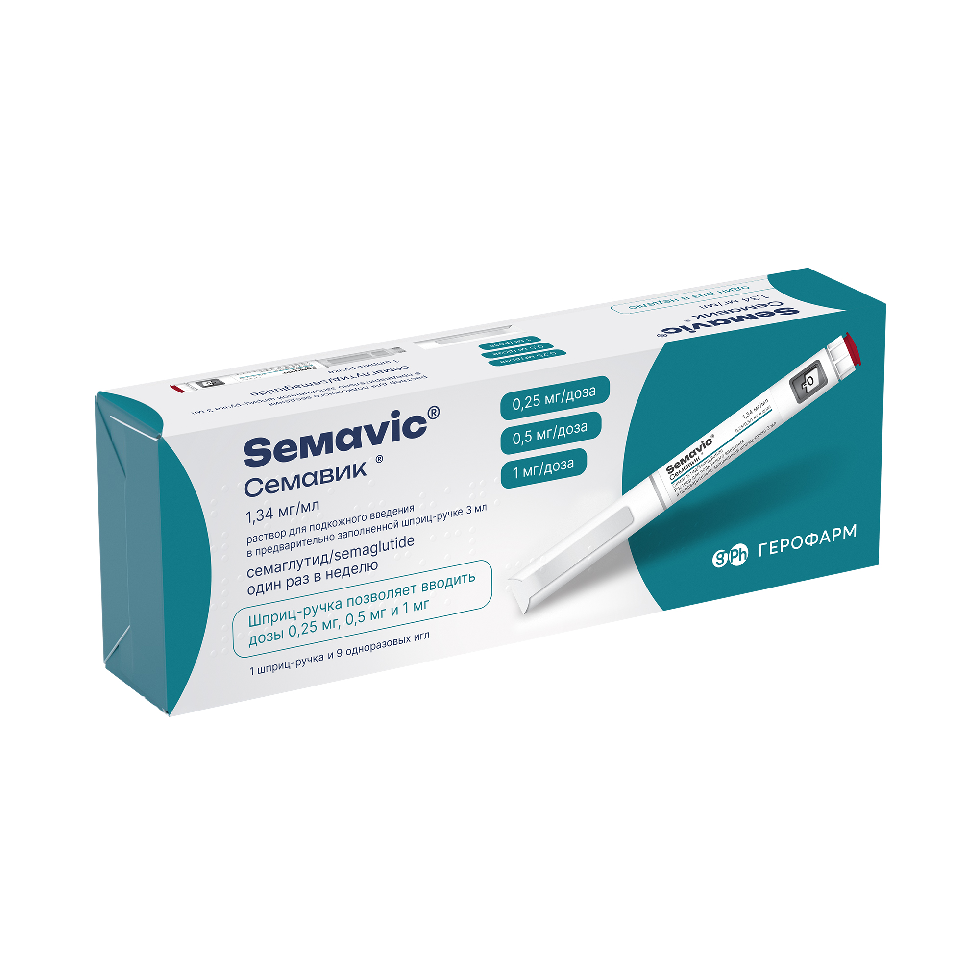 Предварительно заполненная шприц-ручка Семавик® позволяет вводить дозы 0,25 мг, 0,5 мг и 1 мг.