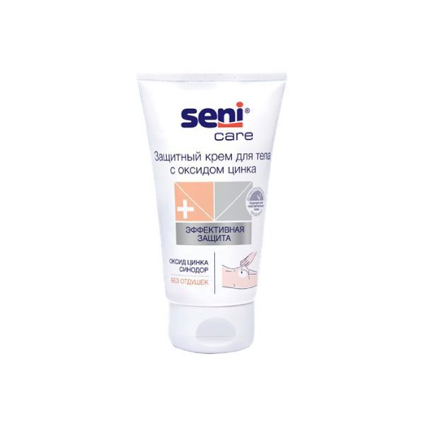 Seni Care с окисью цинка и синодором - защитный крем для ухода за кожей на участках тела, подверженных перманентному давлению, трению, а также действию раздражающих веществ, содержащихся в моче и кале. Профилактика пролежней и опрелостей.