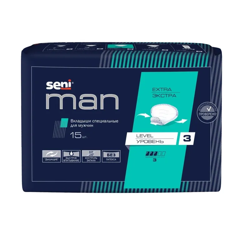 Вкладыши специальные для мужчин seni man в размере EXTRA LEVEL 3 (ЭКСТРА УРОВЕНЬ 3),