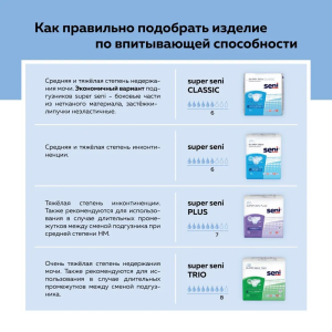Сени super classic medium подгузники для взрослых обхват талии и бедер 75-110см №10