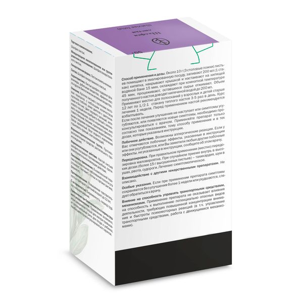 2 фильтр-пакета (3 г) помещают в стеклянную или эмалированную посуду, заливают 100 мл (½ стакана) кипятка, накрывают и настаивают в течение 30 мин. Фильтр-пакеты отжимают, объём полученного настоя доводят кипячёной водой до 100 мл.
