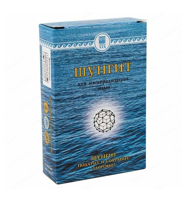 Навеска шунгитового щебня весом 350 г, заключенная в п/э герметически заваренный пакет, помещена в картонную красочную коробку, на которую нанесены инструкция по применению, а также данные о весе изделия и сроке его хранения.
