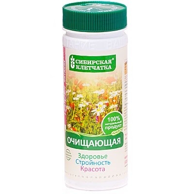 Клетчатка - это природная детоксикация и поддержка полезной микрофлоры Вашего кишечника. В Сибирской клетчатке "Очищающая" оптимальное сочетание клетчатки и полезных трав. Она снижает аппетит, уменьшает уровень холестерина в крови, способствует снижению веса и уменьшению объемов, эффективно и безопасно очищает кишечник от шлаков и токсинов. 100% натуральный продукт.