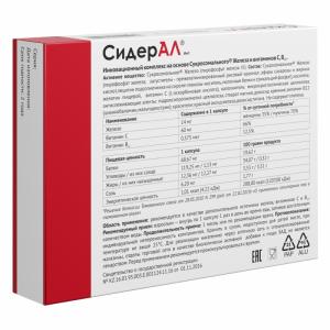 СидерАл® Инт. содержит пирофосфат железа в сукросомах, а также витамин С и витамин В.