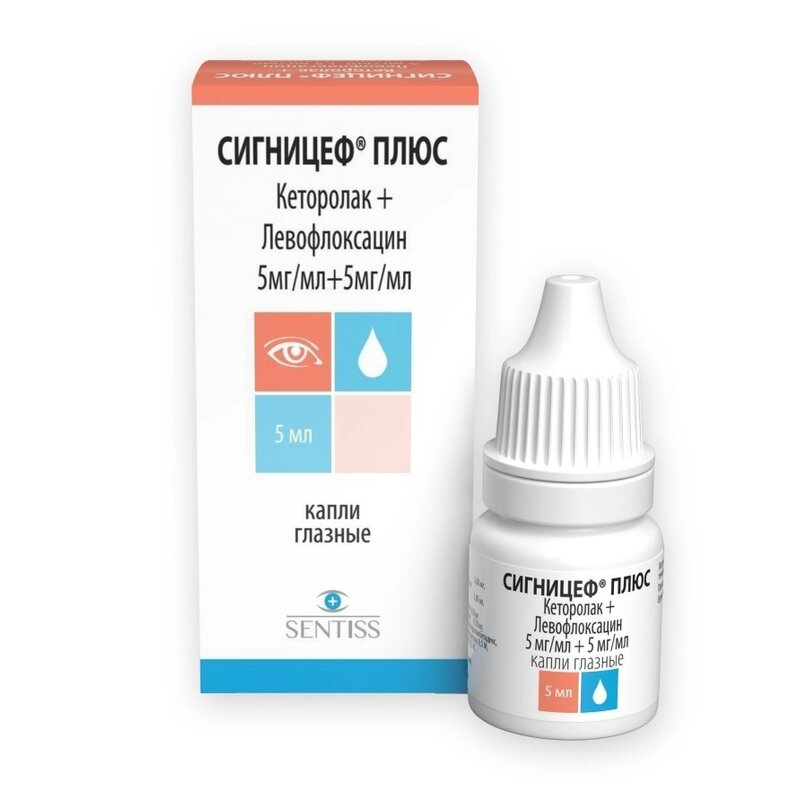 Препарат Сигницеф® Плюс содержит действующие вещества кеторолак и левофлоксацин и применяется для лечения заболеваний глаз, связанных с воспалением и инфекцией.