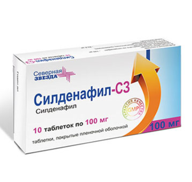 Силденафил-СЗ таблетки покрытые плёночной оболочкой 100мг №10