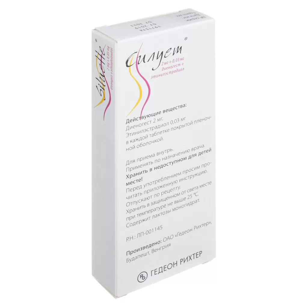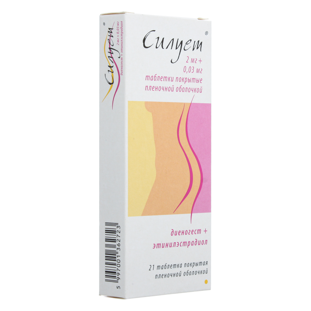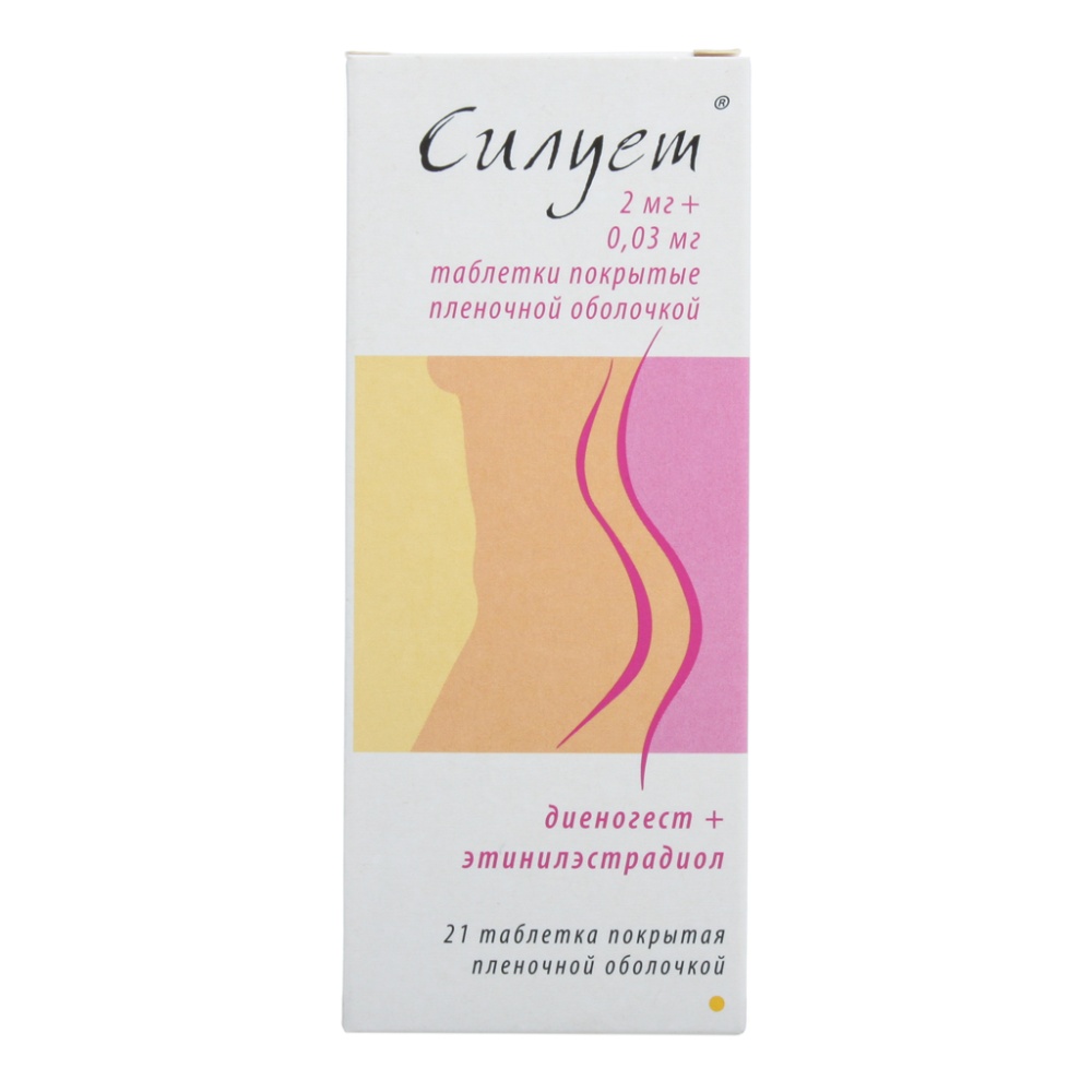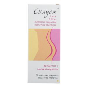 Силует® — пероральное комбинированное средство с антиандрогенным эффектом, содержит этинилэстрадиол (ЭЭ) в качестве эстрогена и диеногест (ДНГ) в качестве прогестагена. Контрацептивный эффект препарата Силует® обусловлен различными факторами, наиболее важными среди них являются — ингибирование овуляции, повышение вязкости цервикальной слизи, изменение перистальтики маточных труб и структуры эндометрия. Антиандрогенный эффект комбинации ЭЭ и ДНГ основывается на снижении концентрации андрогенов в плазме.