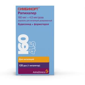 Поскольку препарат Симбикорт® Рапихалер содержит два действующих вещества, будесонид и формотерол, при его применении могут возникать нежелательные эффекты, по своему характеру и интенсивности аналогичные эффектам, описанным для этих двух препаратов при их раздельном применении. В клинических исследованиях заболевания дыхательной системы, в основном бронхит, назофарингит, синусит, вирусная инфекция верхних дыхательных путей, в группе пациентов, получавших препарат Симбикорт® 160 мкг+4,5 мкг/доза, наблюдались не менее чем у 3 % пациентов и чаще, чем в группе плацебо.