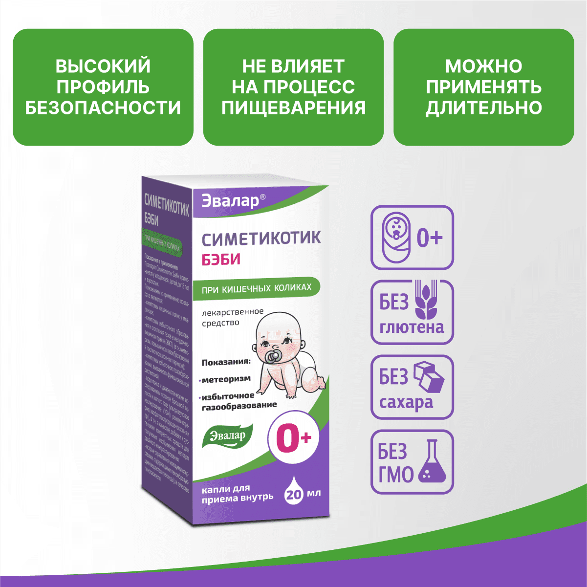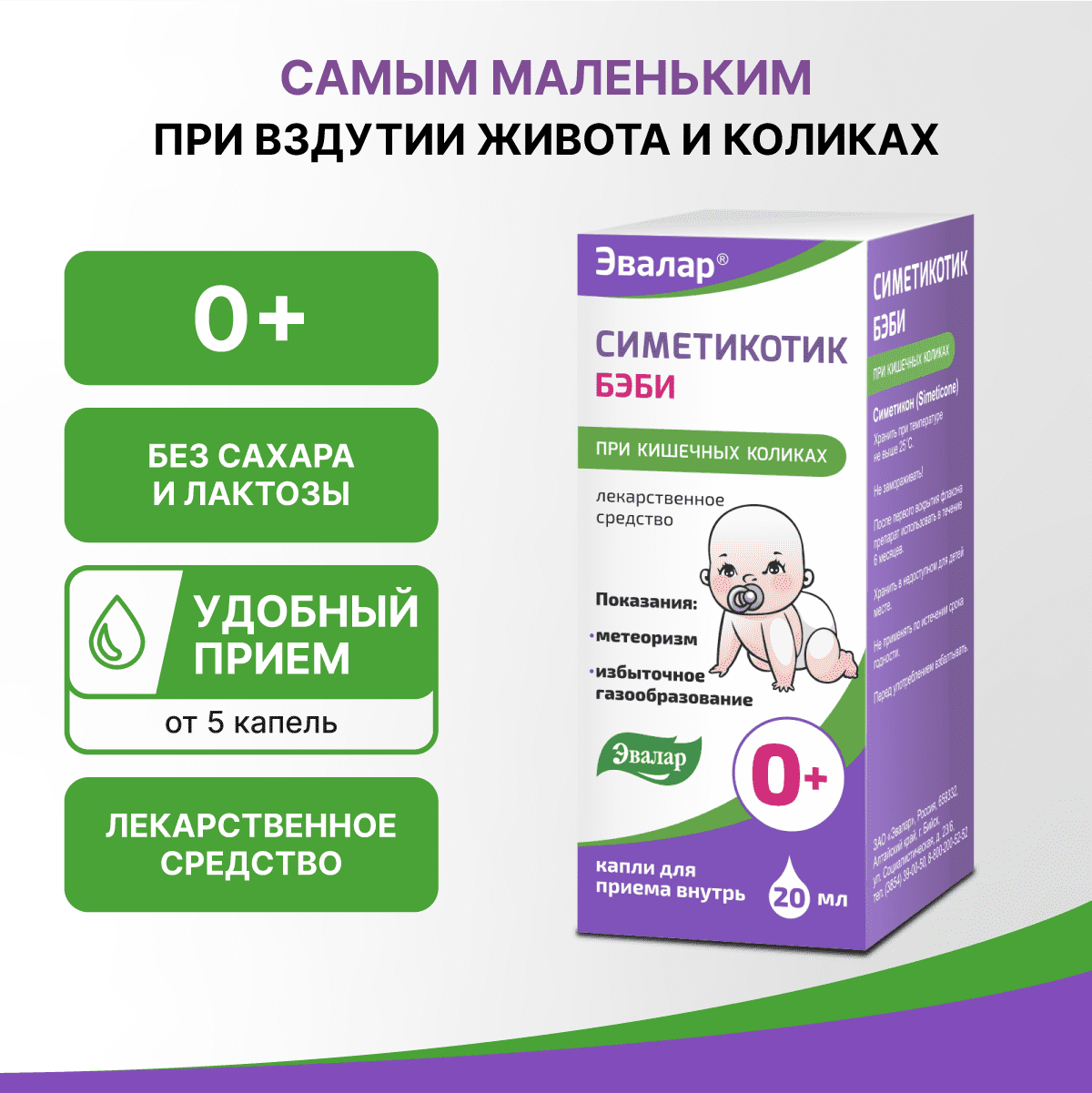Препарат Симетикотик Бэби содержит действующее вещество симетикон*. Фармакотерапевтическая группа: ветрогонное средство.