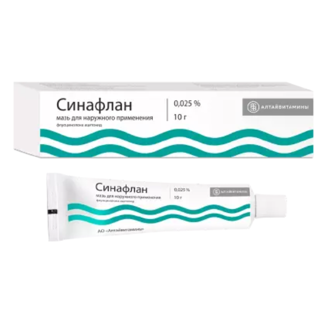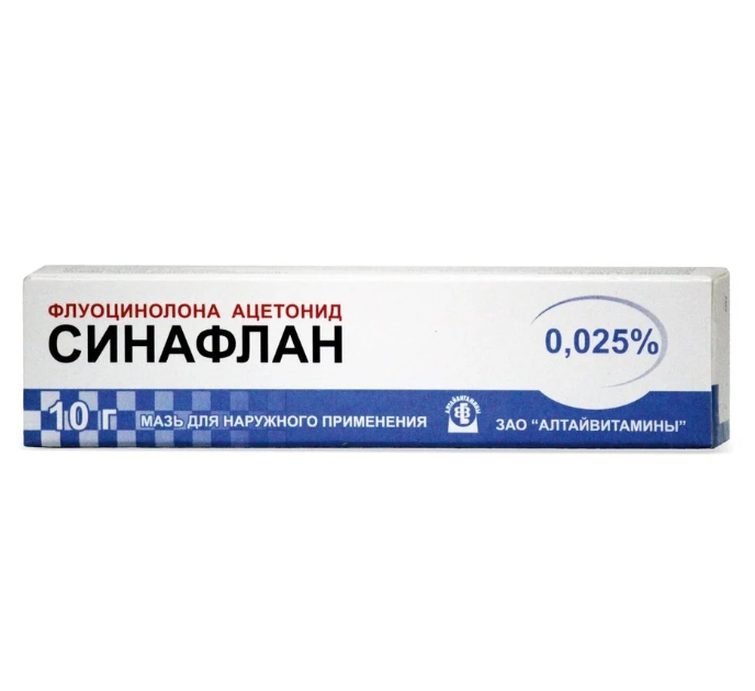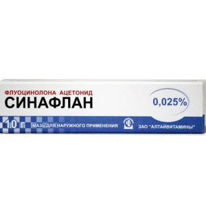 Активное вещество: флуоцинолона ацетонид (синафлан) -0,025 г.