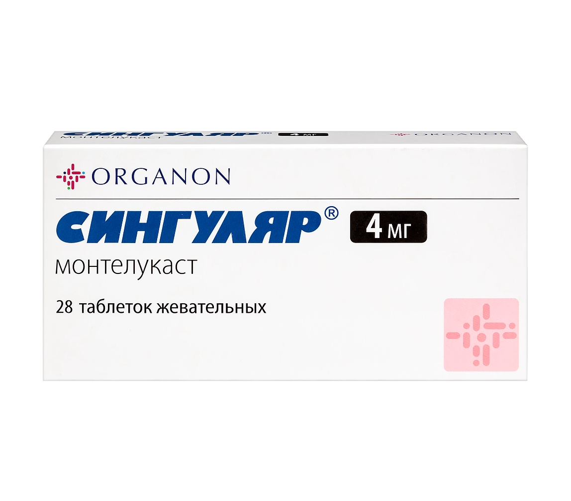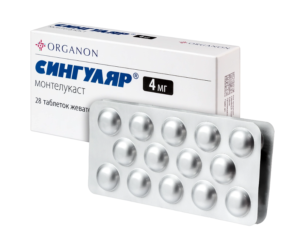 Активное вещество: монтелукаст натрия 4,16 мг (эквивалент 4,0 мг свободной кислоты).