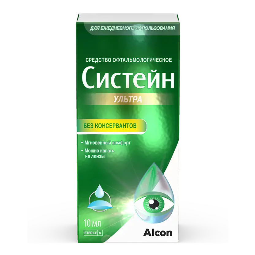 Средство офтальмологическое Систейн Ультра без консервантов — это стерильный раствор, содержащий полиэтиленгликоль 400, пропиленгликоль, гидроксипропилгуар, сорбитол, аминометил пропанол, кислоту борную, калия хлорид и натрия хлорид.