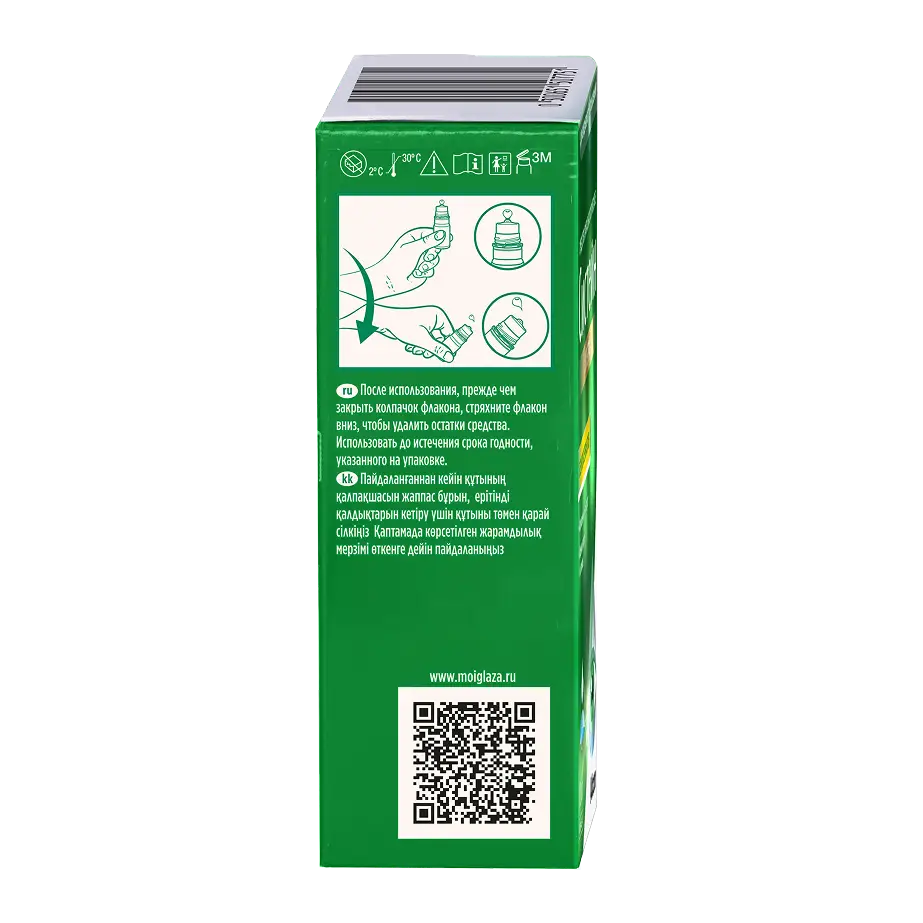 - После использования, прежде чем закрыть колпачок флакона, стряхните флакон вниз, чтобы удалить остатки раствора, которые могут быть на кончике.