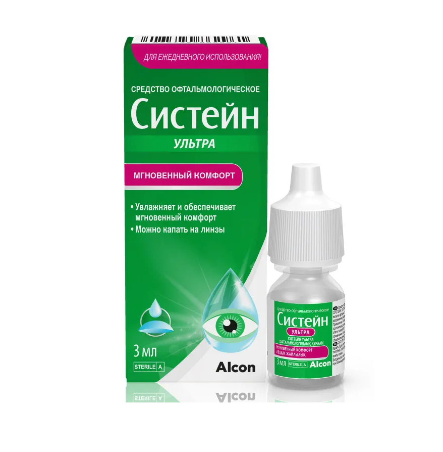 - СИСТЕЙН® УЛЬТРА средство офтальмологическое обеспечивает временное облегчение симптомов синдрома «сухого глаза», таких как чувство жжения и раздражение.