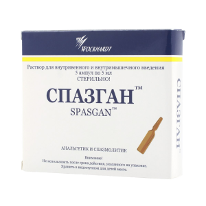 Спазган — комбинированный препарат, в состав которого входят: ненаркотический анальгетик метамизол натрия (анальгин), миотропное спазмолитическое средство питофенона гидрохлорид и М-холиноблокирующее средство фенпивериния бромид.