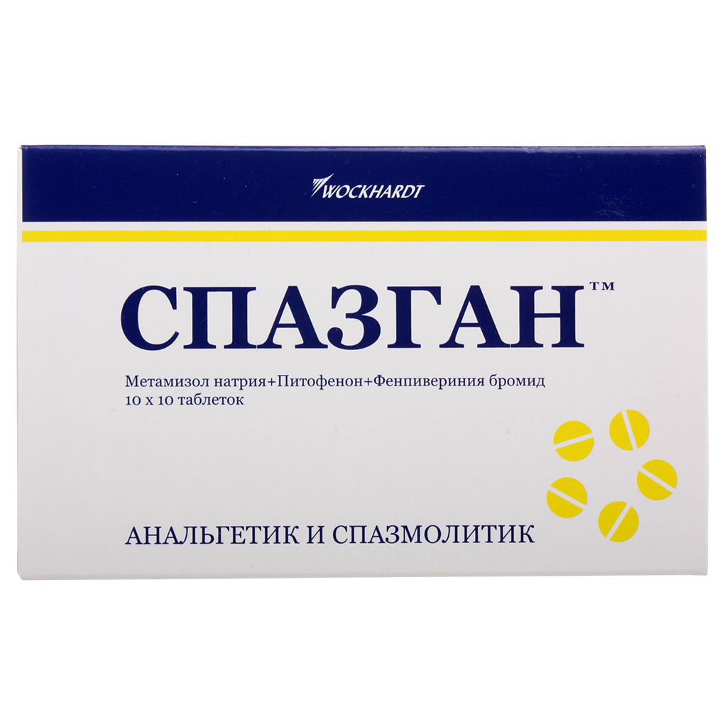 активные вещества: метамизол натрия — 500 мг, питофенона гидрохлорид — 5,0 мг, фенпивериния бромид — 0,1 мг